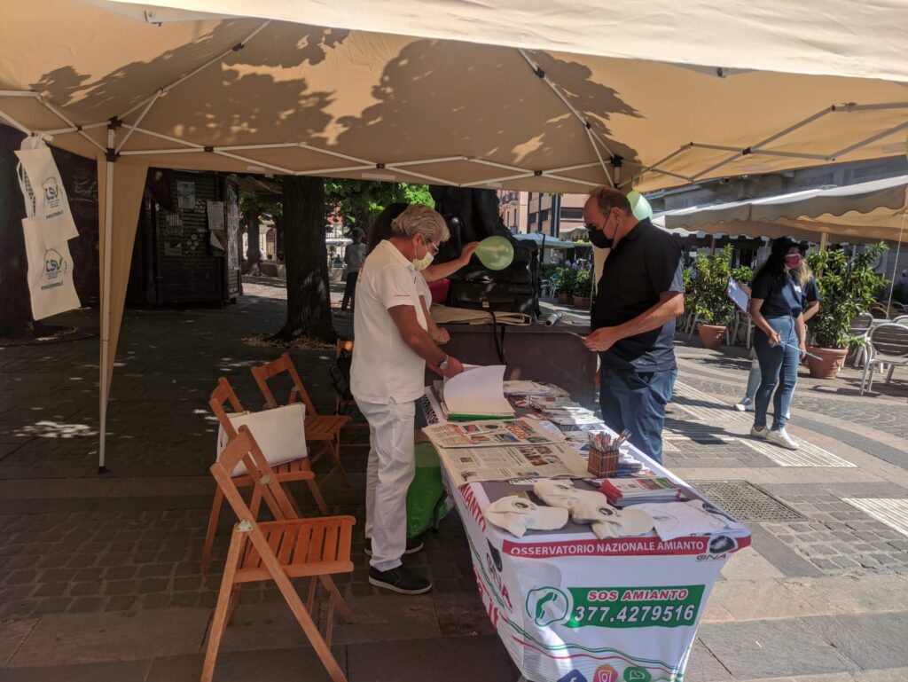 L’ONA ha allestito uno stand in Piazza XI Settembre per fornire informazioni e consulenze gratuite ai cittadini sui problemi relativi all’amianto e alla sua presenza sul territorio. In questa iniziativa le ragazze del Servizio Civile oltre a dare supporto nello stand, hanno svolto un’indagine conoscitiva ai cittadini su ambiente e amianto.