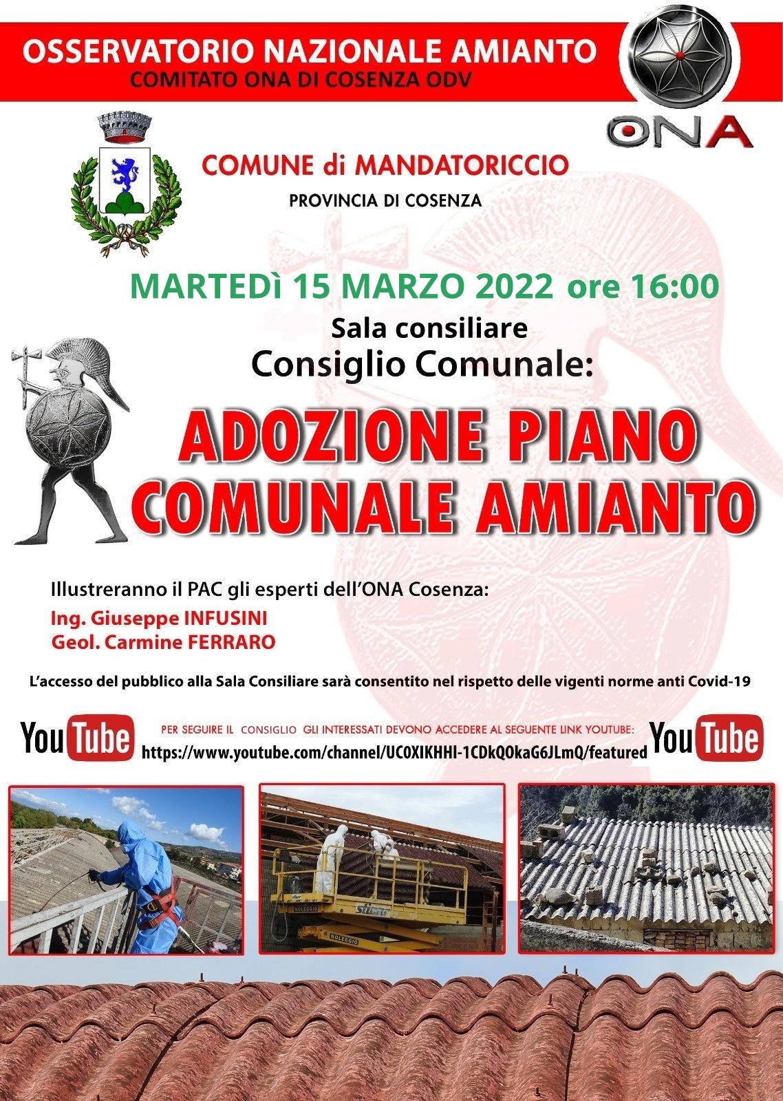 ADOZIONE DEL PIANO COMUNALE AMIANTO DEL COMUNE DI MANDATORICCIO - ONA Cosenza